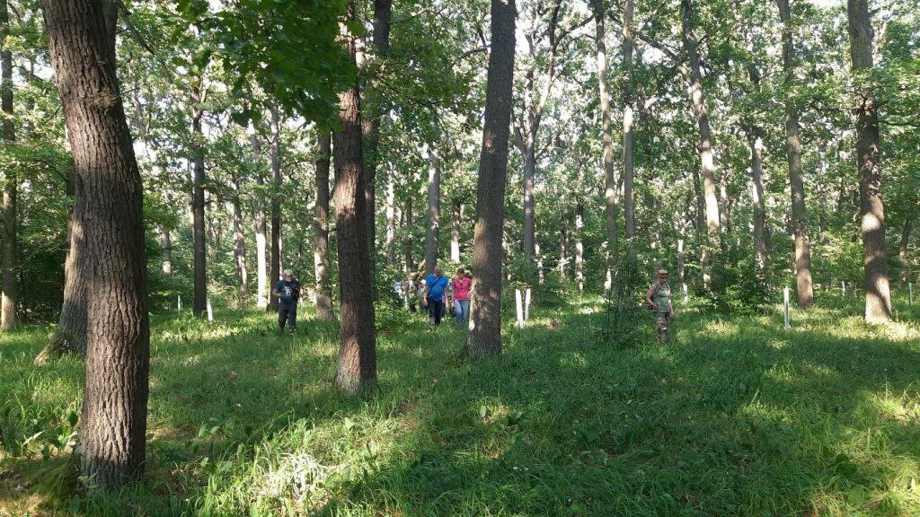 Am Nachmittag ging es weiter nach Mähren zum botanisch wertvollsten Waldreservat „Hodonínská dúbrava“. Die einzigartigen lockeren Eichenbestände sind auch für die Insekten von großer Bedeutung. Die Gruppe JARO bemüht sich mittels Entbuschung und Mahd die letzte Population von Gelbringfalter (Lopinga achine) in der Tschechischen Republik zu erhalten. Die Beweidung des Waldes mit den Exmoor Ponys wird vorbereitet.