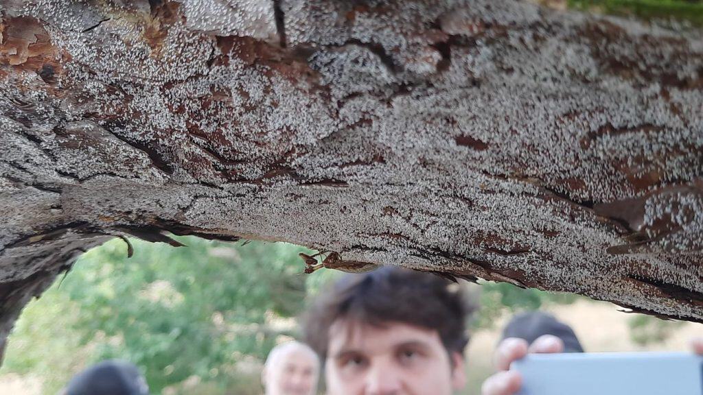 Zum Abschluss der Exkursion haben wir am Sonntagvormittag „Havranické vřesoviště“ (Heide bei Havraníky) im Nationalpark Thayatal in Begleitung des Zoologen Martin Škorpík besucht. Ursprünglich handelte es sich um eine große Gemeinschaftsweide (Allmende), von der nur noch ein kleiner Teil übrig geblieben ist, während der Rest der Fläche vom Wald verschluckt wurde. Neben der Wiedereinführung der Schafbeweidung kurz nach der Gründung des Nationalparks war auch die Einführung halbwilder Exmoor-Ponys im Jahr 2018 erfolgreich.